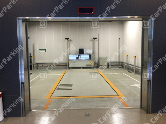 大型セダン車入庫可能な最新式のフラットパレット搭載の室内の機械式の駐車場です。